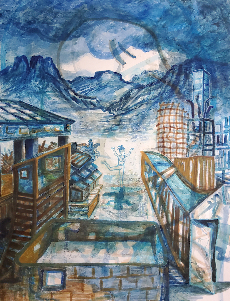 Technique mixte, neocolors, medium gras, peinture acrylique
